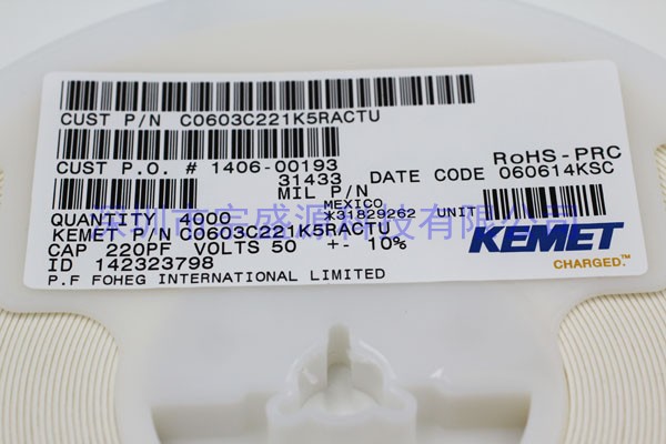 產(chǎn)品名稱:KEMET陶瓷電容 0603 50V 220PF C0603C221K5RACTU